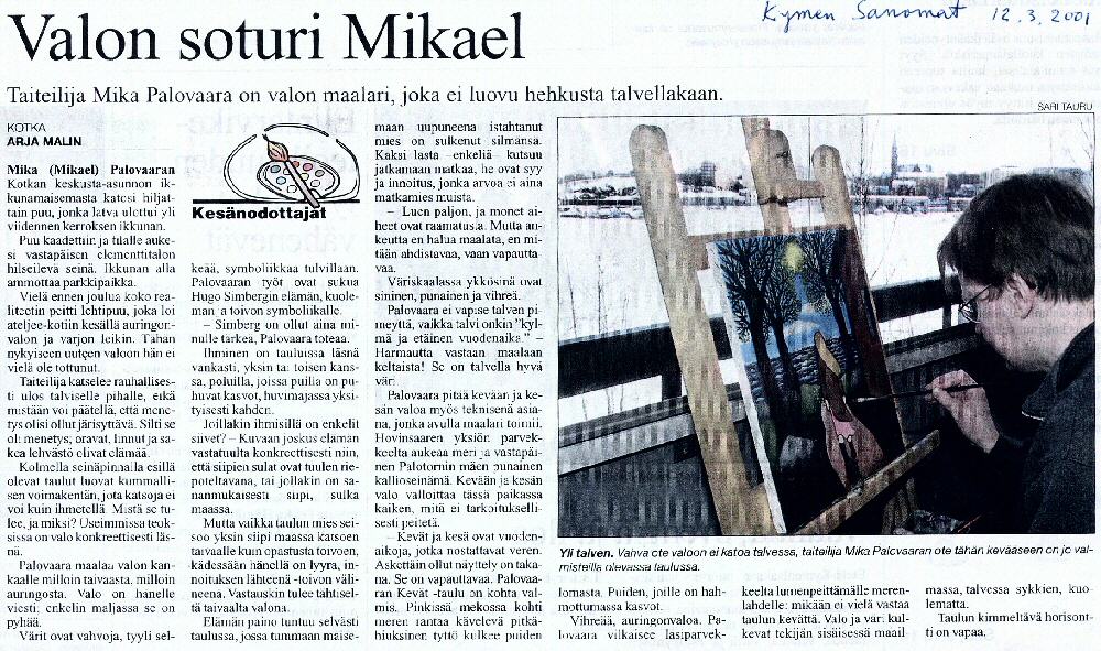 Lehtileikkeitä - "Kymen sanomat" 12.3.2001