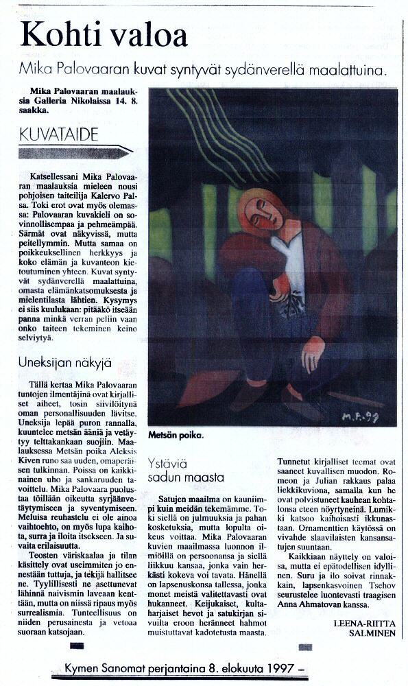 Lehtileikkeitä - "Kymen sanomat" 8.8.1997