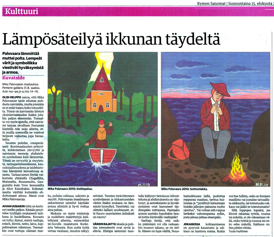 Lehtileikkeitä - "Kymen sanomat" 15.8.2010